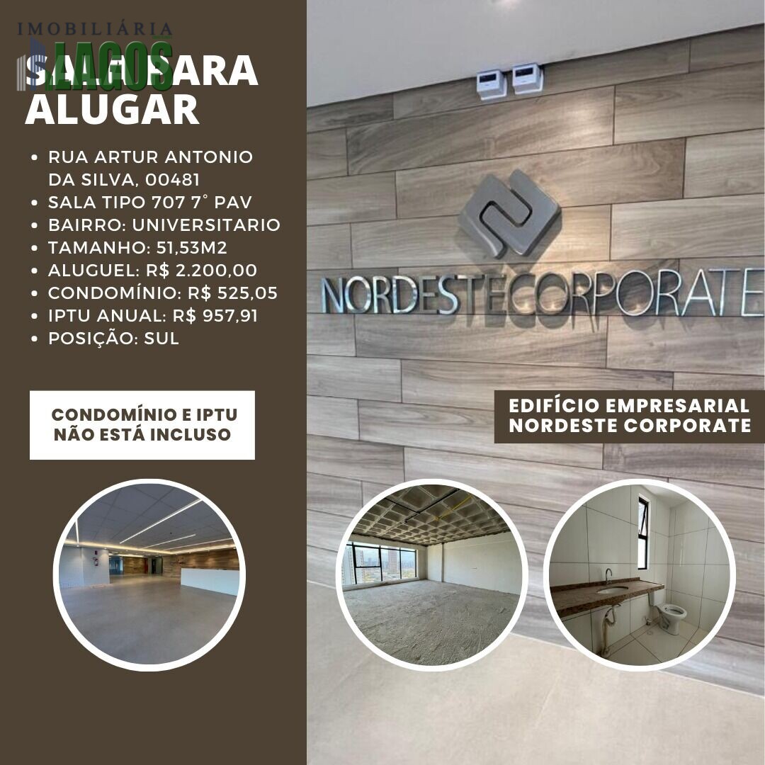 Excelente oportunidade de locação no renomado Edifício Empresarial Nordeste Corporate, localizado no bairro Universitário, uma das regiões mais estratégicas e valorizadas da cidade
